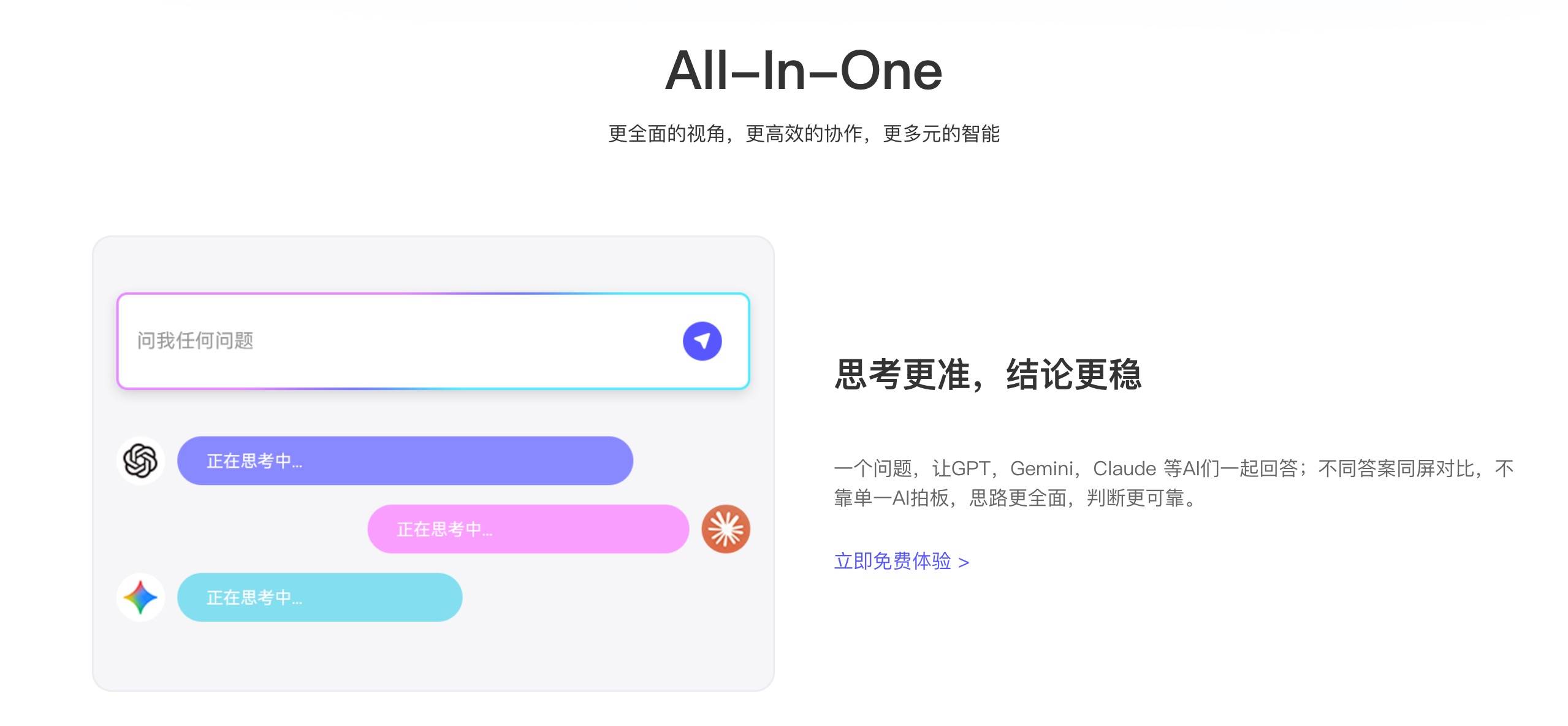 - 多AI协同响应:一次提问触发6个模型同时作答,效率比单一模型高3倍;